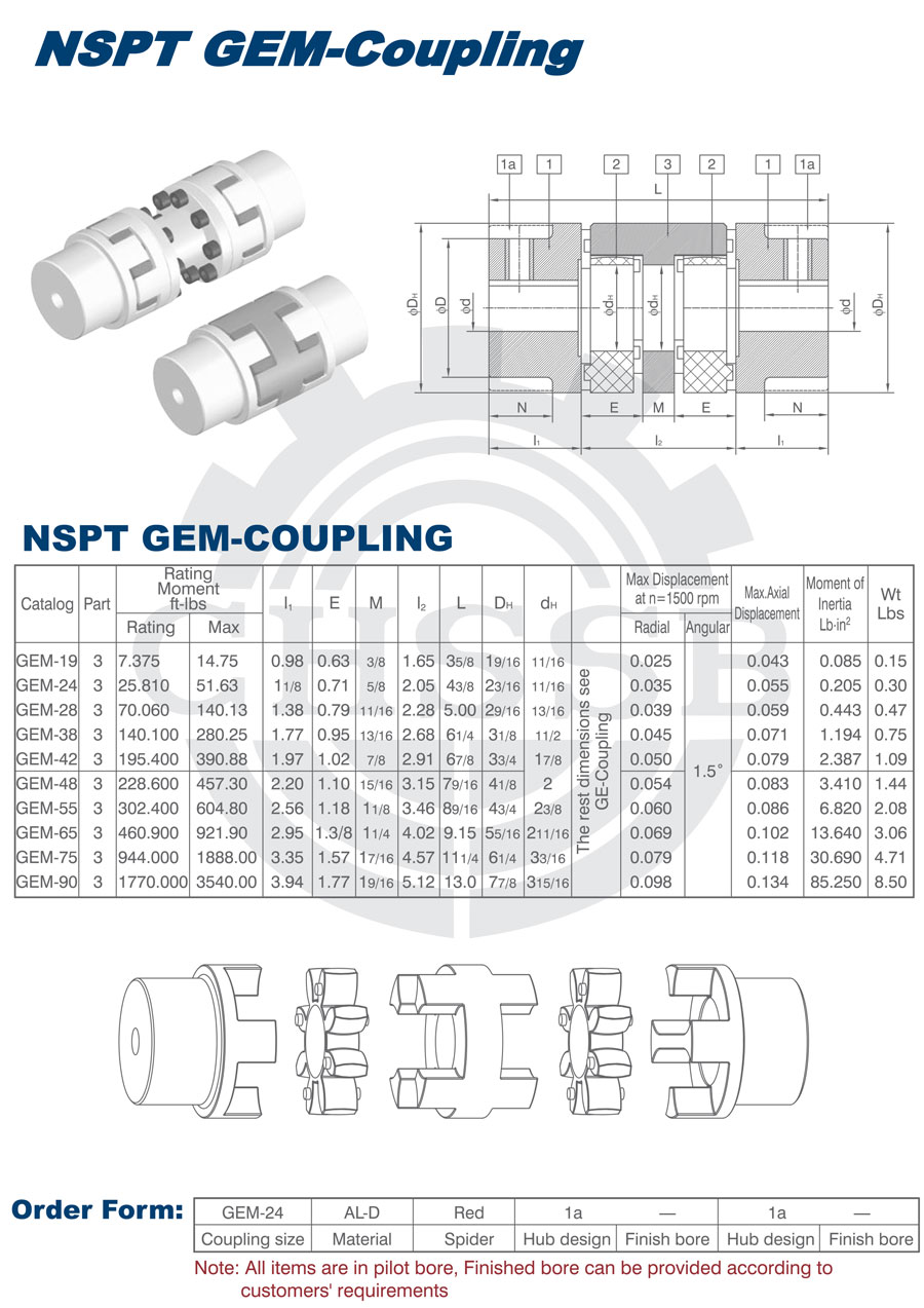 產(chǎn)品范圍: 美標(biāo)/歐標(biāo):(GEM) 英制尺寸產(chǎn)品(適用于美標(biāo)市場) 公制尺寸產(chǎn)品(適用于歐標(biāo)市場) GEM型聯(lián)軸器