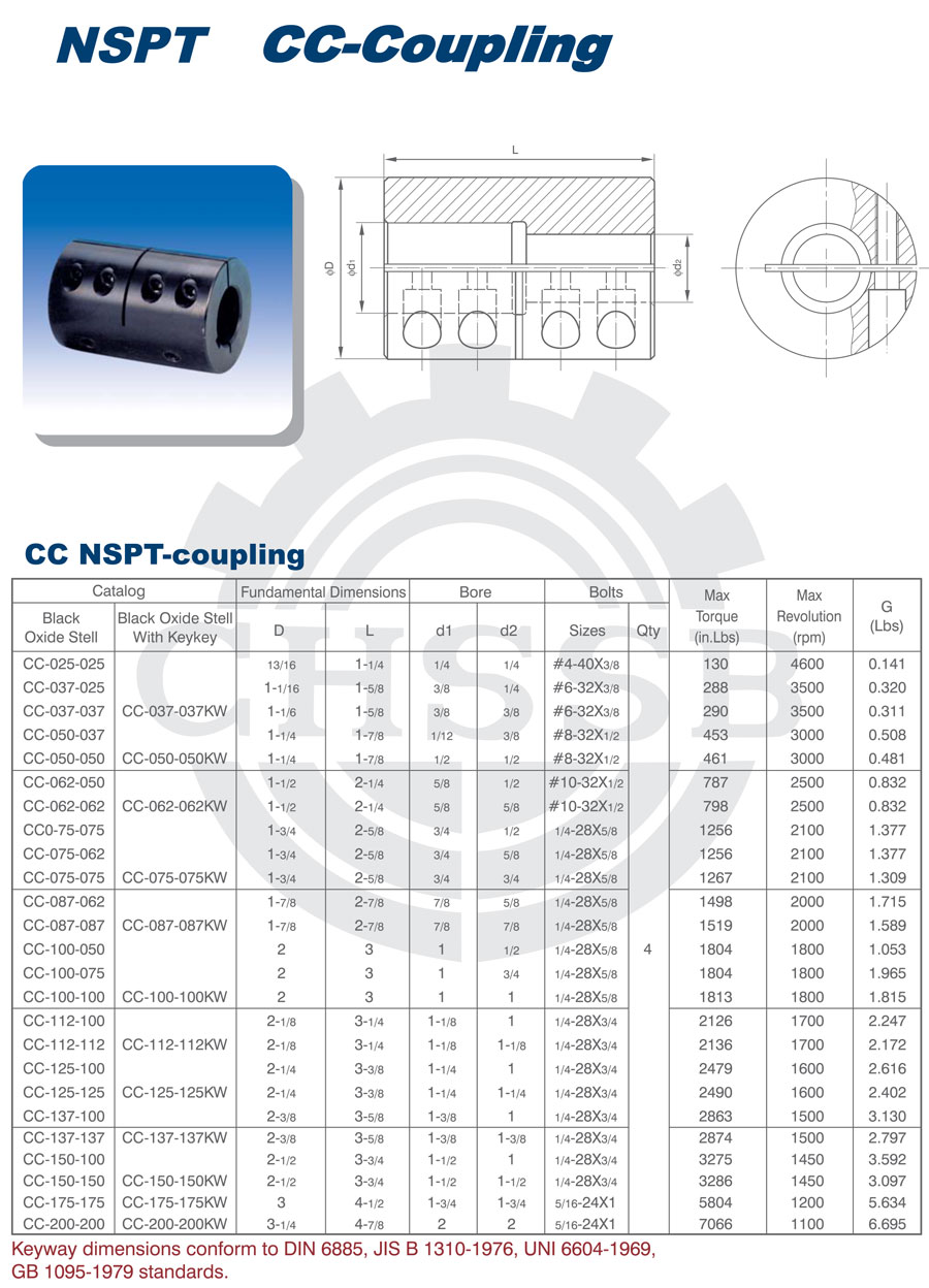 產品范圍: 美標:(CC) 英制尺寸產品(適用于美標市場) CC型聯軸器